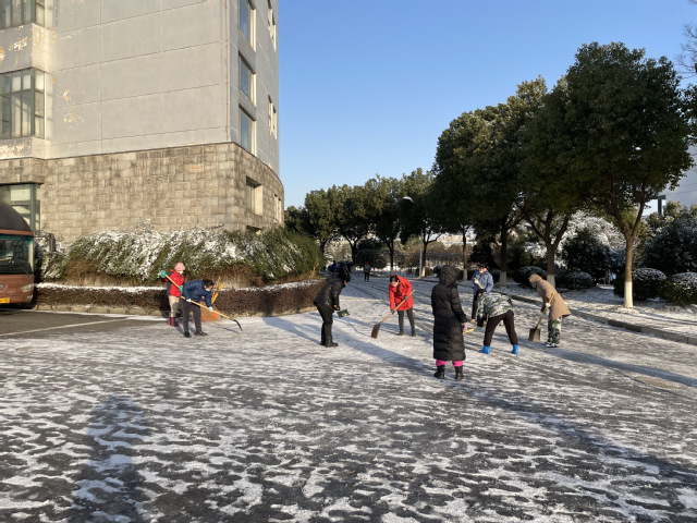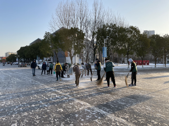 30日上午8点,因气温较低,冰冻已对部分道路及校园交通造成影响,后勤“扫雪突击队”人员,不畏严寒、坚守岗位,为师生安全出行保驾护航。团结的力量让扫雪队伍不断扩大,保洁人员、学生群体、安保人员等。。。上午10点,经过两个小时的奋战,扫雪任务圆满完成。后勤服务中心将继续践行初心使命,为学校高质量发展做好后勤保障工作。