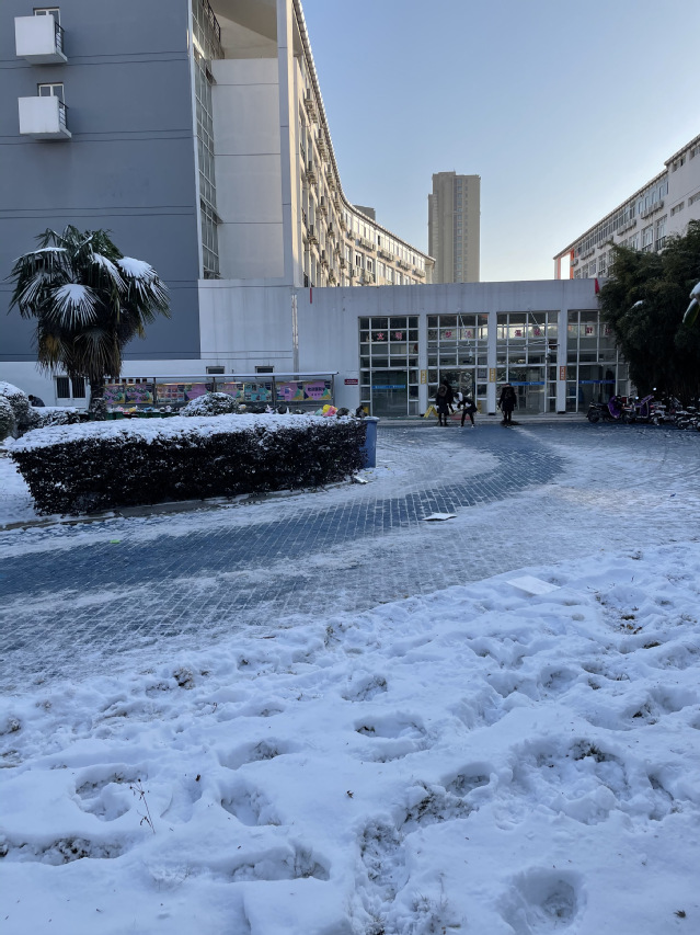 有一种责任,叫风雪中的坚守。有一种风景,叫风雪中有你。后勤服务中心秉持“服务校园、服务师生”的宗旨,较早前根据天气预报提前准备好铁锹、推雪板、大扫帚、工业盐、等扫雪工具。水电保障相关人员已进行全面排查,保障供电线路稳定、为供水管道增加防冻措施。水电保障人员24小时待命,以确保能源供应正常。在暴雪来临后,后勤服务中心连同相关部门立即展开应急行动,对全校人行道区域以及校门口划分的责任路段进行撒盐除冰工作;对坡道、台阶等进行铺垫防滑垫、草包等措施;在学生公寓门前铺设防滑指示牌、防滑垫等;利用竹竿等工具清理树枝积雪,以消除安全隐患。
