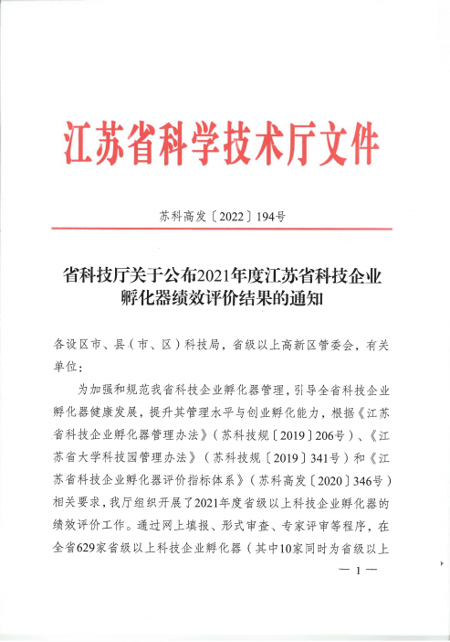 1【科创园】科创园获评江苏省2021年度...2022-09-08