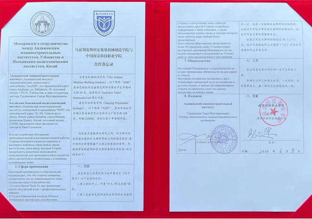 随后,我校与乌兹别克斯坦安集延机械制造学院签署了合作协议,并在合作学校选址挂牌“南科永利学院”“鲁班工坊”“郑和中心”。其中“永利学院”是我校新型职业技能人才育培一体化平台,此次在境外设立继续教育分院是树立职业技能培养模式输出的典型案例,后期学校将致力于平台机制、运行建设、统筹兼顾、资源共享,打造创新型金年会职业技能培养模式。双方还就推广中国的高等职业教育优质资源、输出专业技能培训鉴定标准、为在乌兹的中国企业员工提升学历等具体合作事宜进行了深入交流。