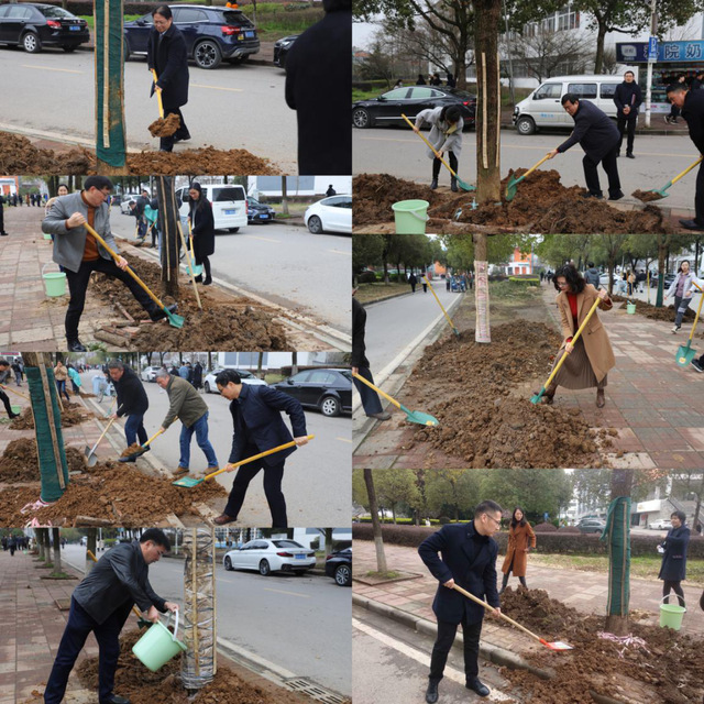 春和景明,绿意萌动。又是一年春风绿,又到一轮植树时。三月的校园到处散发着春天的气息。已于2月启动的2021校园绿地、行道树补植、种植采购项目顺利进行,为提升整体绿色校园规划打下了坚实基础。3月12日上午,全体校领导、全体中层干部以及党员代表们,在进行完党史学习教育动员大会后,一起来到了校园主干道植树点。大家三五成组,分工协作,挥锹铲土、扶正树苗,种下了一棵棵树苗。此次活动共种植香樟树21棵。领导们用实际行动践行“绿水青山就是金山银山”理念,巩固树立爱绿护绿和保护环境的责任意识,积极投身到植树造林活动中,共建美好校园。