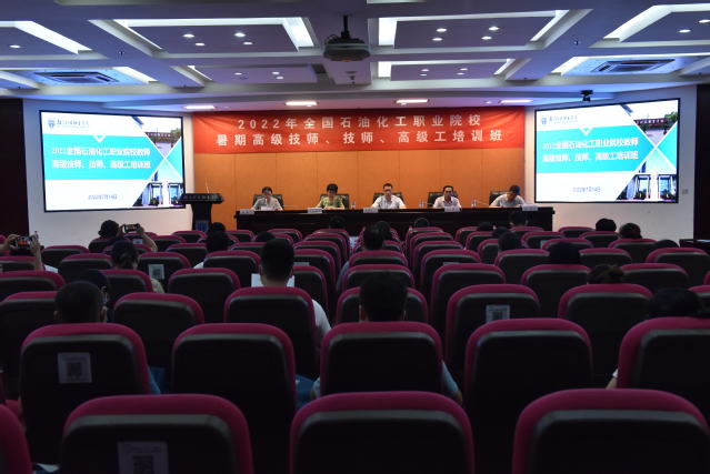为了加快石油和化工职业院校双师型教师队伍的培养步伐,提高的专业教学水平和实践技能,全面提升我国化工教育的教学质量,突出技能型人才培养的主体,开展双师型教师队伍建设,由中国化工教育协会、全国石油和化工职业教育教学指导委员会、化学工业职业技能鉴定指导中心主办,江苏省石油化工职业教育行业指导委员会、金年会承办的“2022年全国石油和化im体育 校教师高级技师、技师、高级工培训班”开班仪式于7月14日上午在学校图文行政楼四楼报告厅隆重举行。学校副院长赵旭升及继续教育学院、化学与材料工程学院、环境工程学院、智能制造学院等相关部门领导出席开班仪式,来自青海、新疆、内蒙古、黑龙江、辽宁、广东、浙江等全国十二个省、自治区、直辖市,二十个市,二十三所职业院校共65名学员参加了开班仪式。